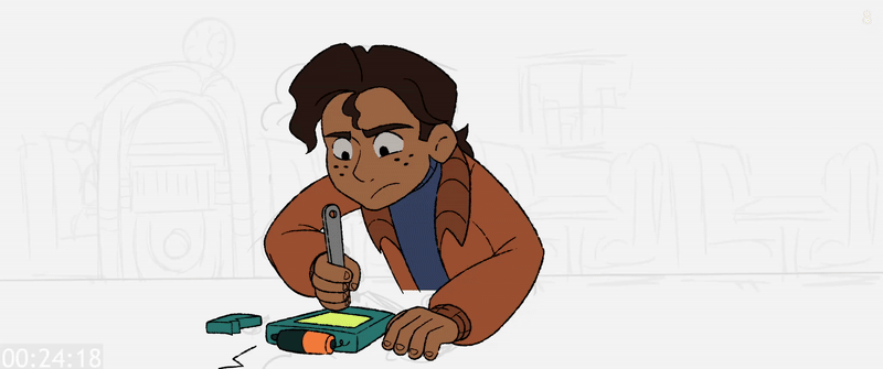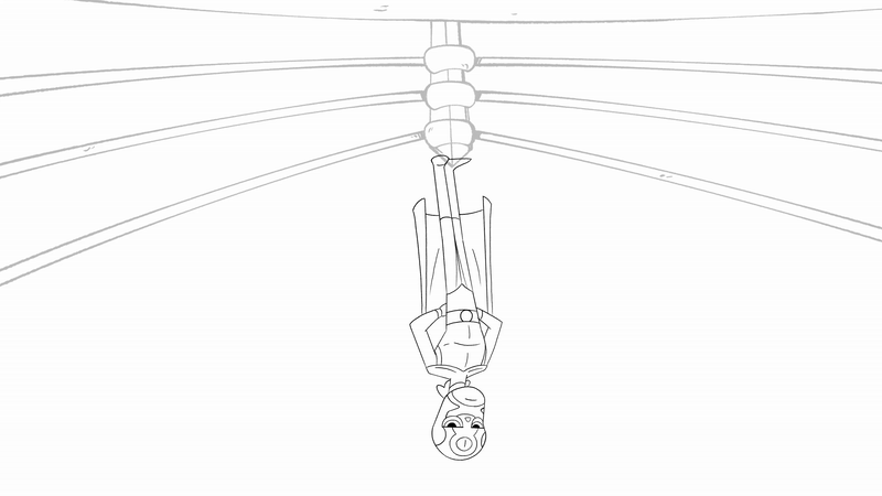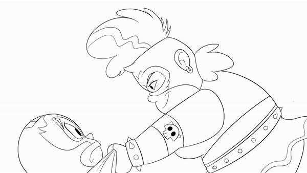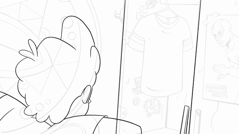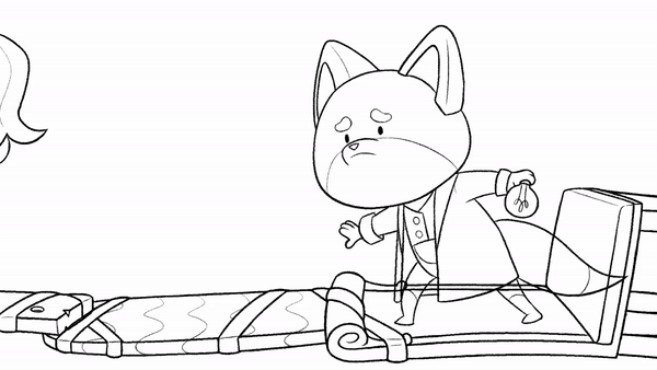 Animated clean lines for scenes of an animated character featured in post-credits sequences.
